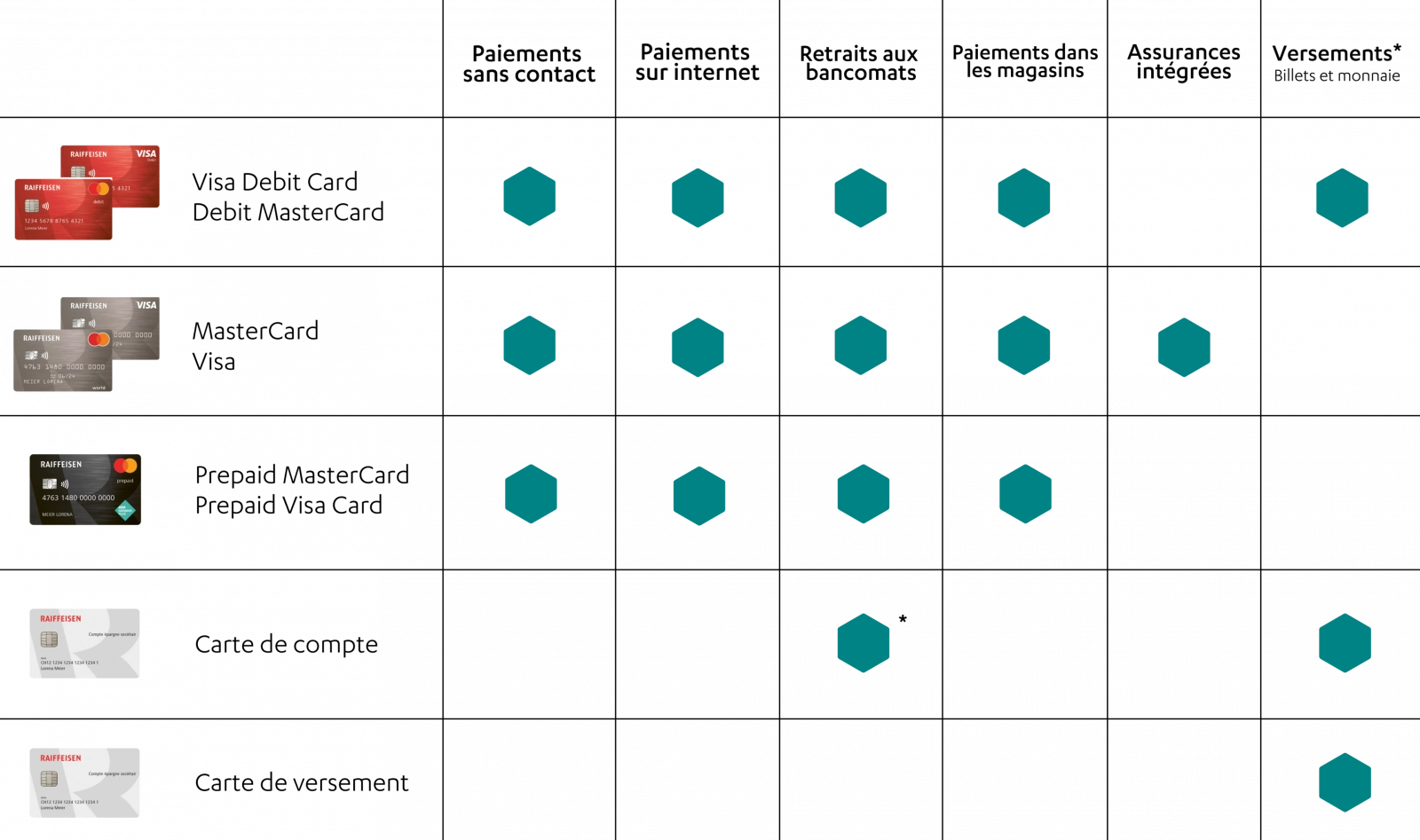 •  Carte de compte gratuite pour versement aux bancomats Raiffeisen
